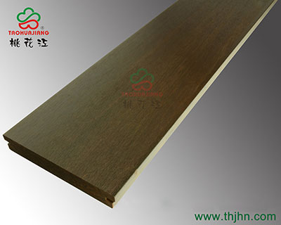 桃花江户外重竹地板颜色为碳化色,根据碳化的时间与温度,可以分成深碳,浅碳,和中碳。目前比较多的是中碳,色调温和美观。